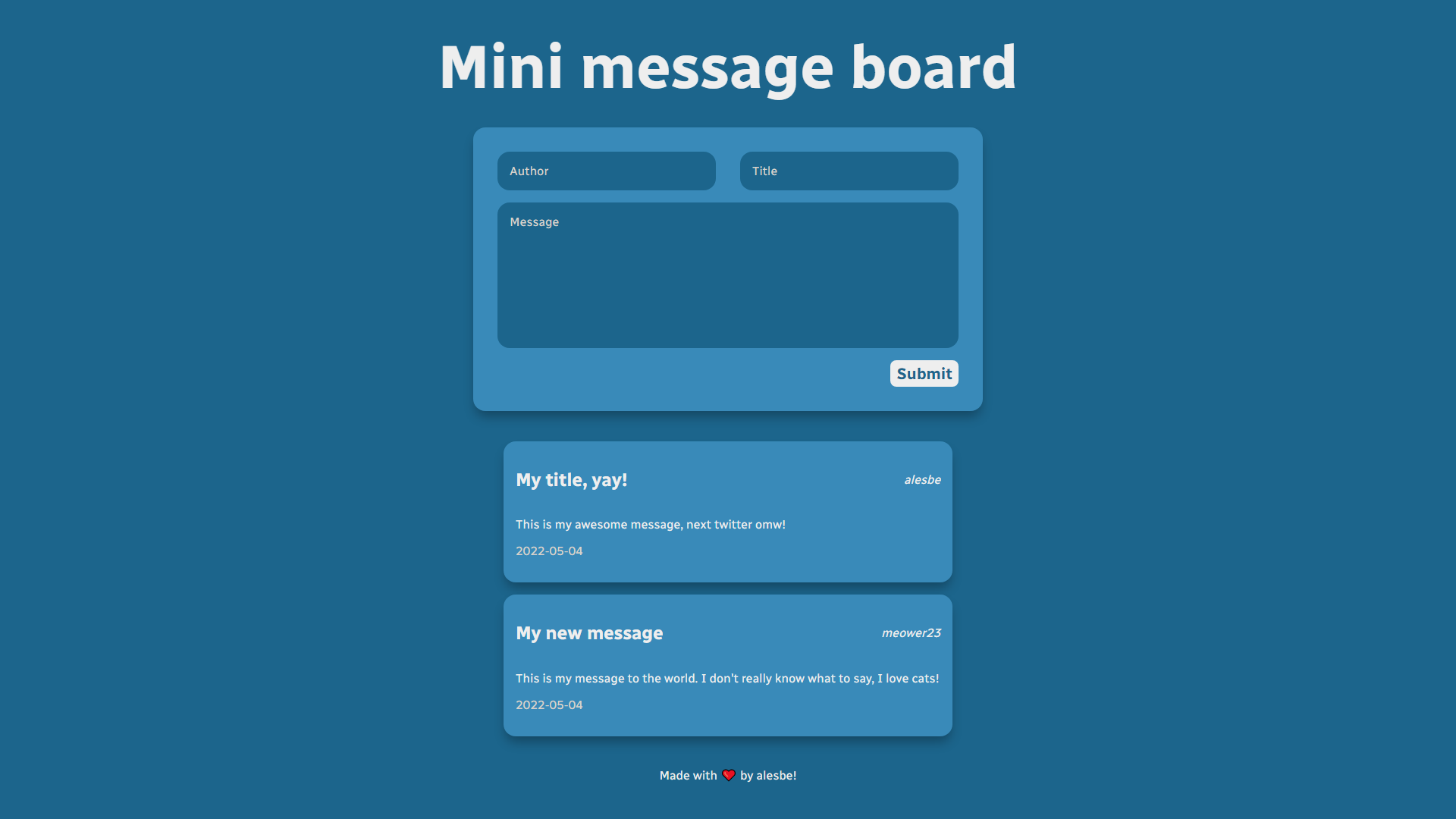 A lightweight message board made with MongoDB, Express, React, and NodeJS.